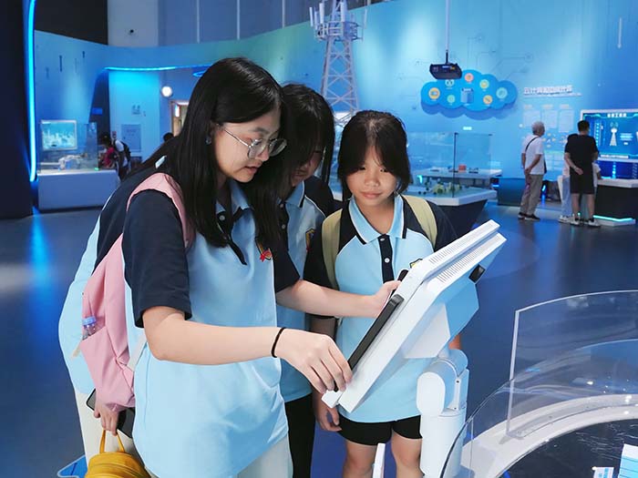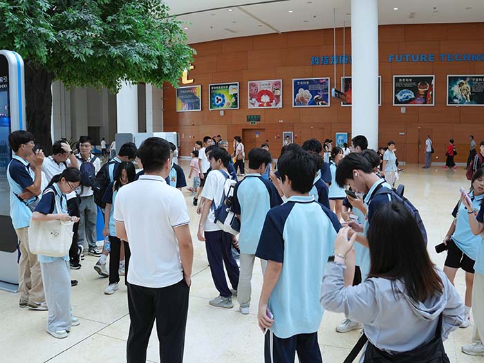 在 “飛天之夢” 展區,同學們望著航空航天模型,好奇地向講解員詢問原理,還排隊體驗模擬飛行,滿臉喜悅。“人與健康” 展區,互動裝置讓人體知識變得易懂。“數碼世界” 的炫酷科技,引得同學們連連驚嘆。大家積極探索,現場氛圍熱烈,盡情享受科學魅力。